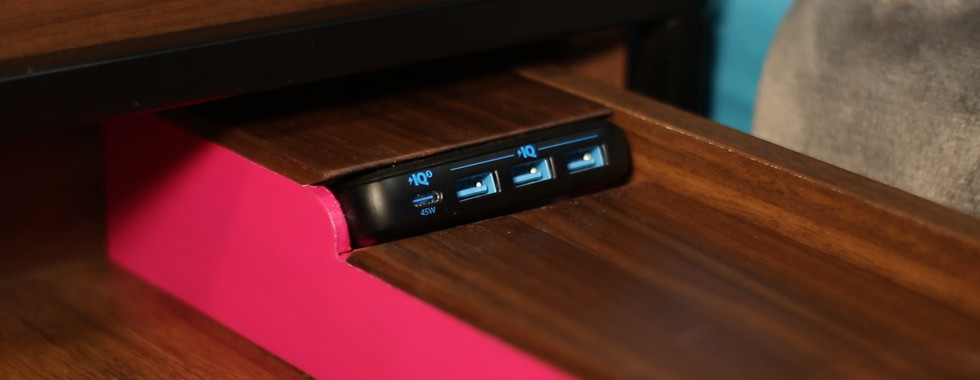 To take care of the mess of charging cables I decided to add a USB Charging Hub to the drawer. This will clear up the top of the bedside table. The hub I used has USB C and 45W fast charging so it will be future proof. I thought it would look better to sit in the drawer at an angle so I used a bevel gauge to set the angle by eye.