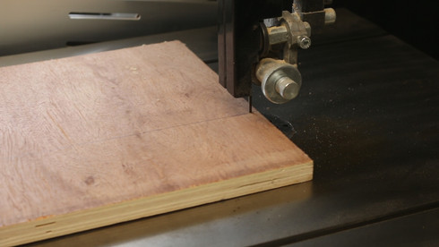 The next step is to cut the plywood back board to size. I opted for 100mm wide so I cut that on my bandsaw. A table saw would be a better tool for this job but as the cut isn't crucial in anyway I used my bandsaw as it was already set up. You could cut this by hand too or perhaps ask your local DIY store to cut it for you too.