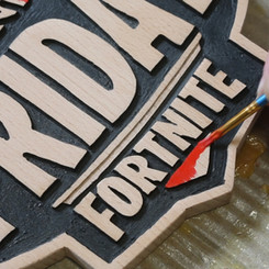 To start this project I printed the Friday Fortnite logo onto some self adhesive paper and applied it to a board of European Beech.